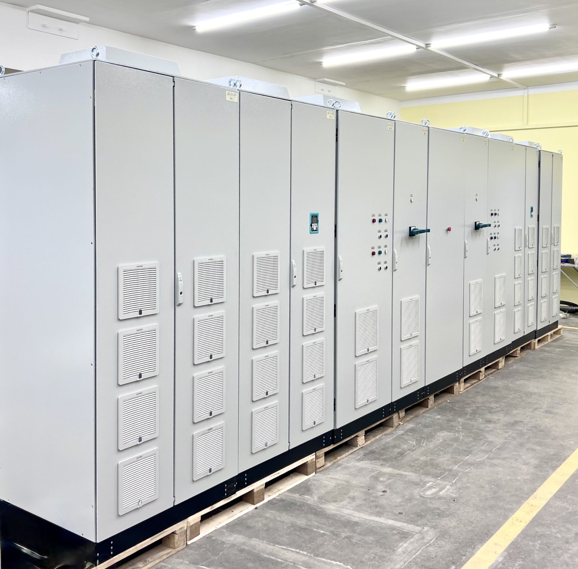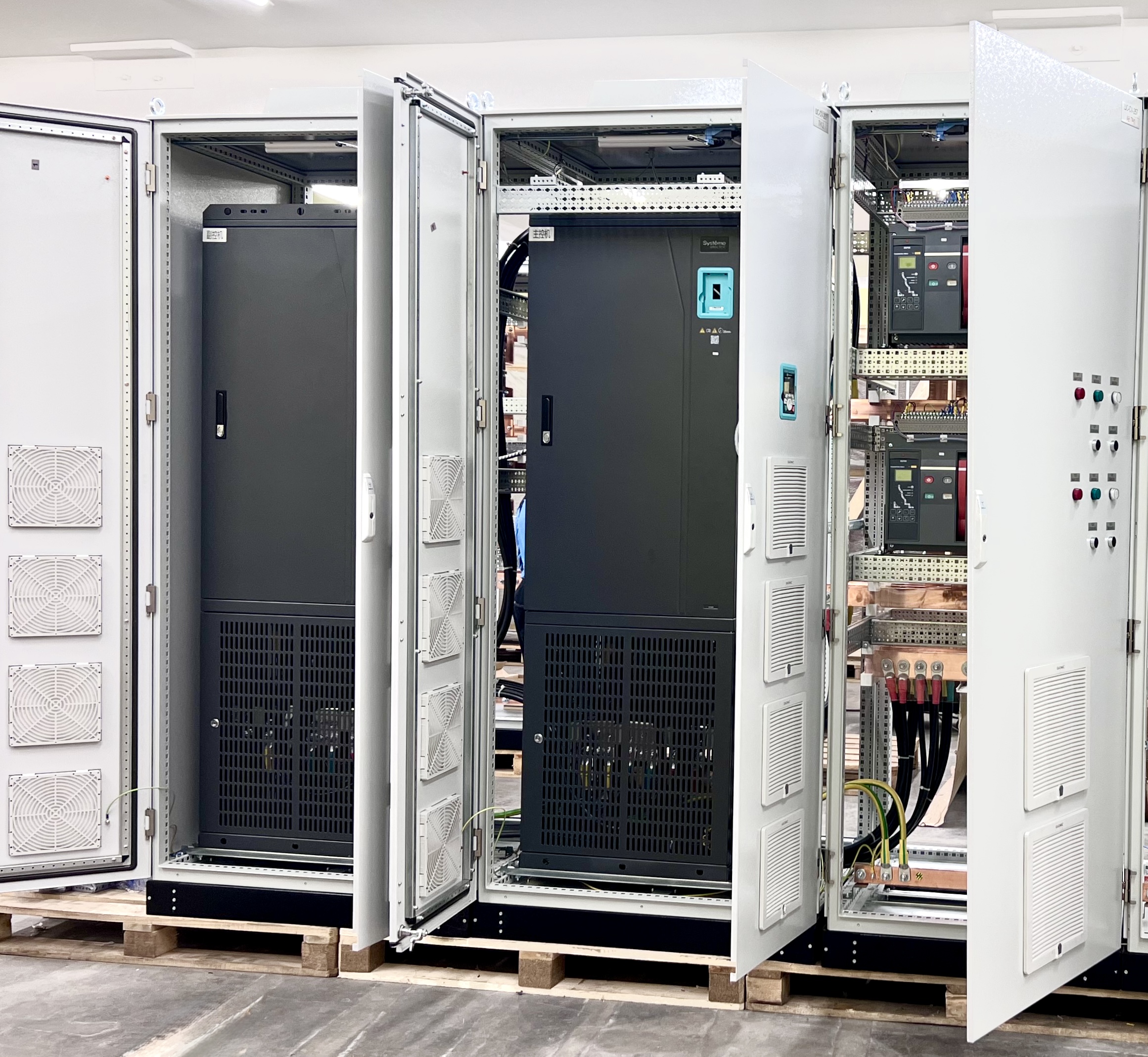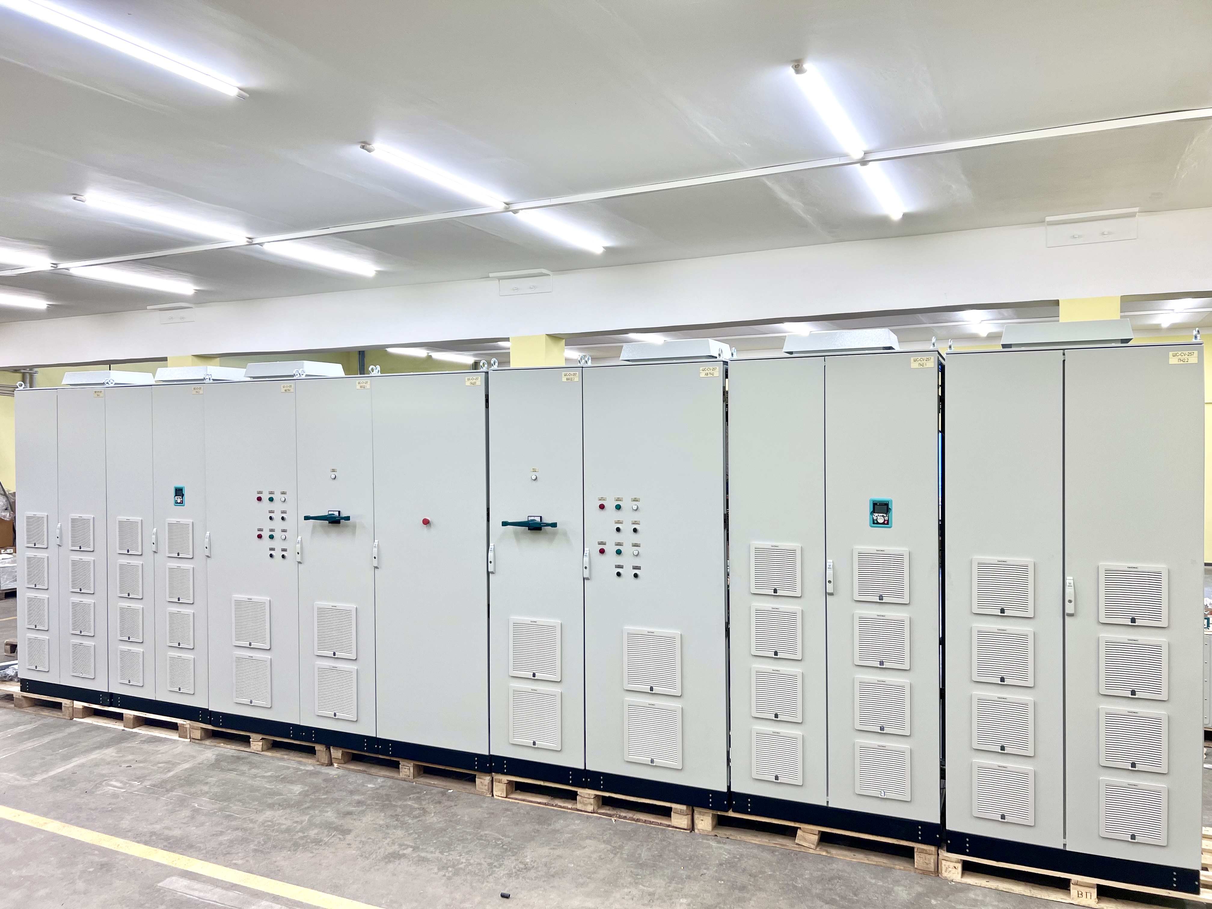 Этот проект для нас стал очень интересным и полезным опытом: помимо больших преобразователей частоты, которые сами по себе усложняют процесс установки и подключения, сборка силовых шкафов включала ещё серьезную работу с ошиновкой на 2000А. Мы справились с этой задачей, так как имеем собственную станцию по обработке токоведущих шин ALFRA, а также высококвалифицированных специалистов по работе с шиной.