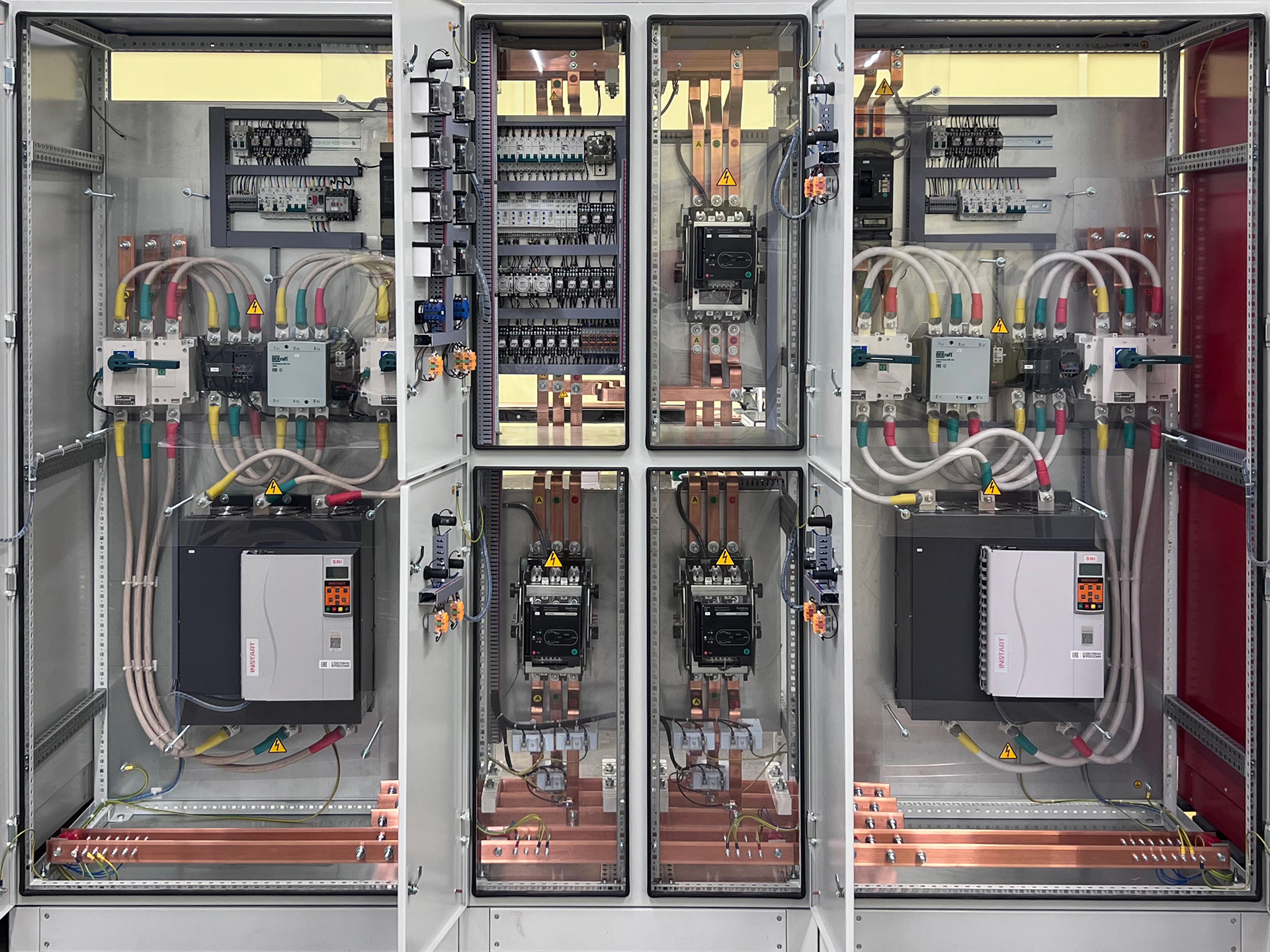 Управление насосами (мощность двигателя 160 кВт) происходит через устройство плавного пуска бренда INSTART серии SNI. Эта серия со встроенным обводным контактором. Устройство оснащено всеми необходимыми функциями для эффективного управления и защиты электродвигателей. Силовая часть УПП выполнена на тиристорах, установленных на каждой фазе, система управления – цифровая, микропроцессорная.
