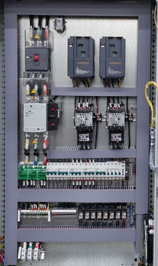 В качестве базовых элементов системы были выбраны частотные преобразователи INSTART серии INPRIME, обеспечивающие точное регулирование скорости и момента, а также комплексную защиту оборудования. Один из преобразователей частоты отвечает за работу шредера, а второй за работу конвейера, который транспортирует гильзы для измельчения.